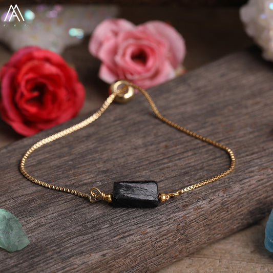 Natural Smooth Gemstone With Gold Chains Bracelet